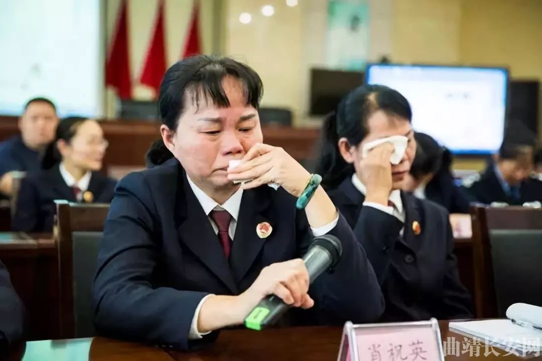 在“中国长安网2018年度照片”中,这一张尤为令人动容——照片中身着蓝色检察官制服的女检察官手持话筒,泪如雨下,她旁边的同事同样以纸拭泪,泪流满面。