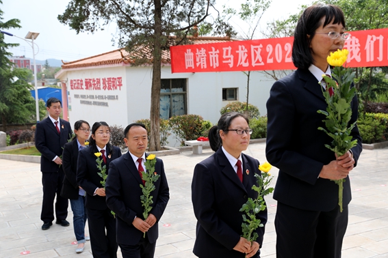 在庄严肃穆的气氛中,党员干警向革命英魂敬献了鲜花,面向纪念碑默哀致敬,并在烈士墓前重温入党誓词。铿锵有力的誓言,表达了对党的忠诚、对共产主义事业的追求和对中国特色社会主义道路的坚定信念。随后,大家瞻仰了烈士墓群,参观了陈列室,重温了革命先烈的英雄事迹,表达对革命先烈的深深敬意。