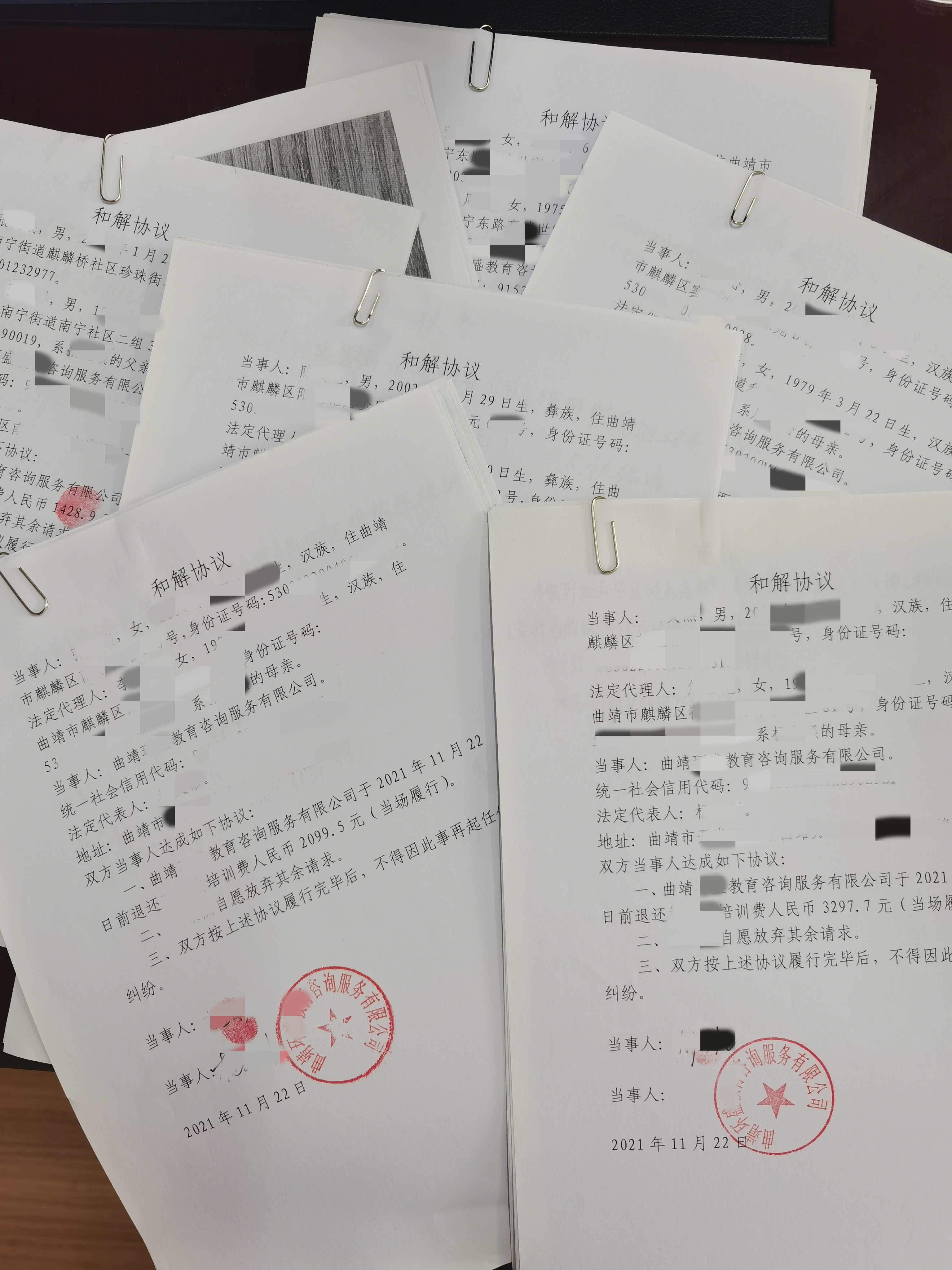 据悉,2021年11月至2022年5月期间,共计106名在该培训机构购买课程的学生家长通过当场调解和线上调解方式参照该调解方案达成和解协议,教育培训机构退还教育培训费合计人民币元102万余元。该系列纠纷得以顺利化解,对同类案件起到有效参照示范作用,这是麒麟区法院诉前调解工作机制的创新成效,体现“双减”政策下的司法智慧。