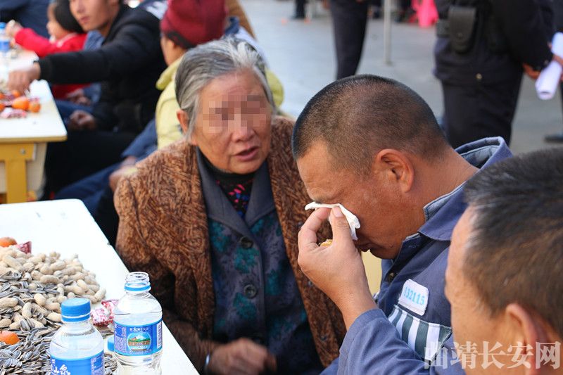 下午13时许,100多名服刑人员家属在警察的精心组织下,按规定有序进入监狱指定地点。服刑人员和家属互诉衷肠,相互凝视,眼角的泪水如潮水般涌出,不时用手擦去对方脸颊的泪水,体验久违的亲情……或紧紧相拥、或紧握双手、或娓娓而谈,整个场景充满着亲情和关爱。