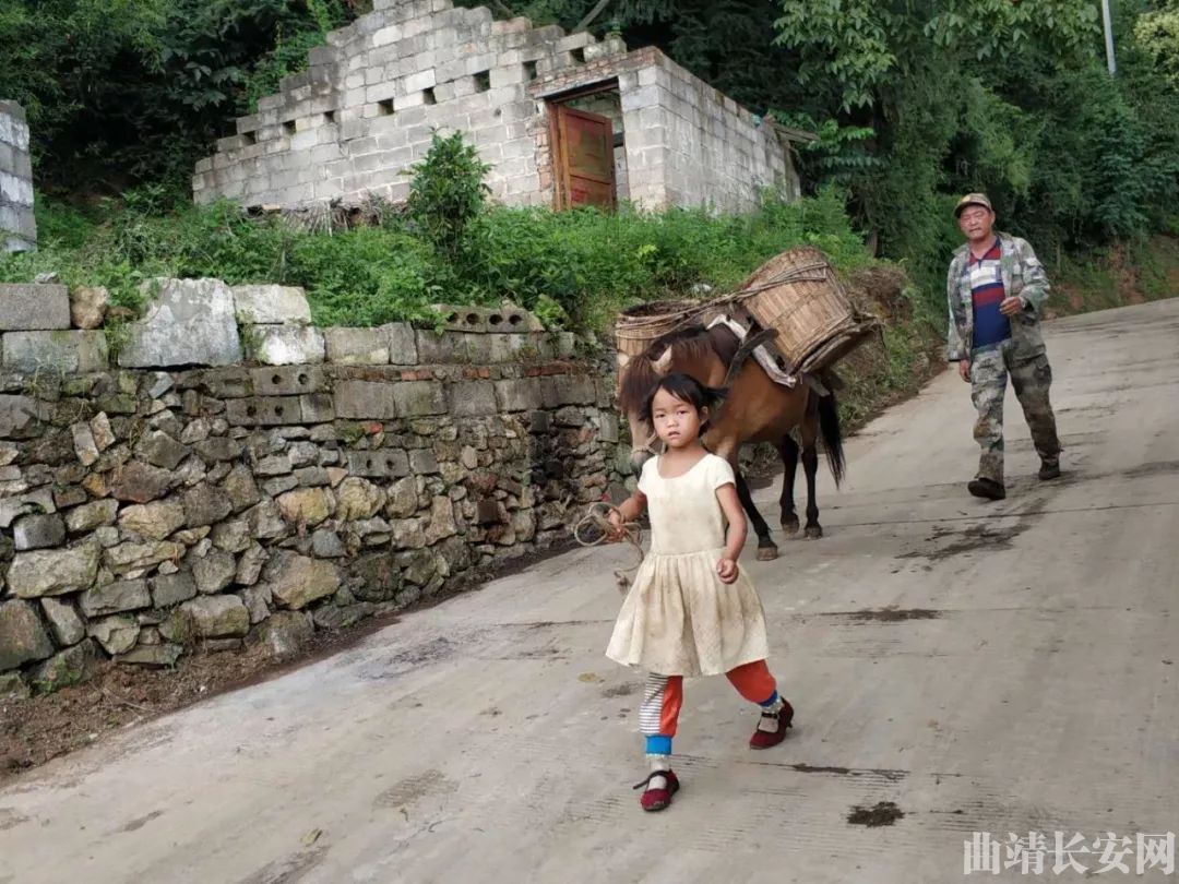 一个多小时后,终于抵达了大山口,这是典型的山村,房屋沿山而建,错落有致的散布在郁郁葱葱的山林中,半遮掩的木门,靠墙而卧的老狗,屋顶上悠闲“洗脸”的猫,驮着萝萝前进的小马,一派悠然自得的乡村景象让整个人都放松了下来。虽然经常来,但村里的变化依然让我们欣喜——新修的水泥路面平整、洁净,簇新的自来水管方便、卫生, 翻新加固的房屋看起来,让人温馨、安定。