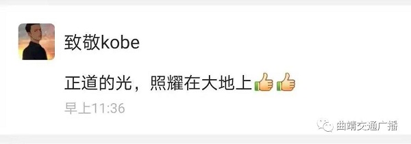 “致敬kobe”留言:正道的光,照耀在大地上!