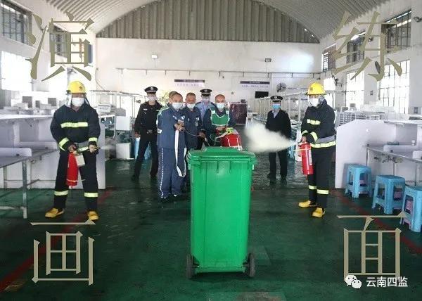 10时许,在省四监某劳动车间,出现“火情”。现场执勤警察立即报监狱指挥中心,并组织现场罪犯捂住口鼻、俯身迅速撤离。副监狱长解雷立即赶到现场指挥,应急消防小组快速找到火源点并分辨燃料材质,使用粉末灭火器,控制火情蔓延。