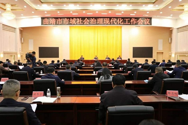 2020年4月29日,曲靖市市域社会治理现代化工作会议召开,李文荣、李石松、吴朝武等领导出席会议,带头研究部署工作,明确工作任务和要求。制定落实曲靖市市域社会治理现代化工作领导小组会议制度、办公室主任会议制度、专项工作组联席会议制度及跟踪督办、约谈问责、挂牌督办等10余项制度,为曲靖市市域社会治理现代化试点合格城市创建提供了制度遵循。