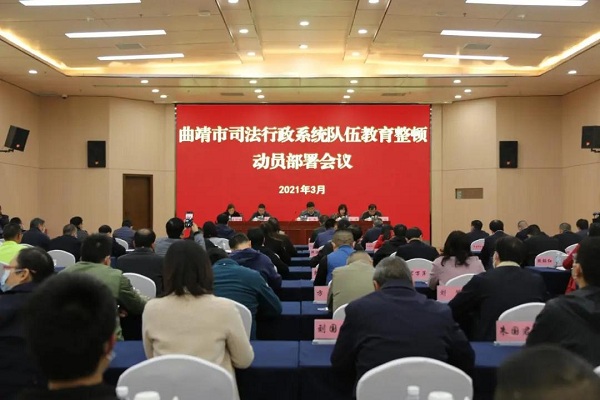 为深入贯彻习近平总书记关于政法队伍建设的重要指示精神,全面落实全国、全省、全市政法队伍教育整顿动员部署会议精神,经省第三驻点指导组、市委政法队伍教育整顿领导小组同意,曲靖市司法局于3月10日召开全市司法行政系统队伍教育整顿动员部署会议,对全市司法行政系统队伍教育整顿工作进行动员部署。