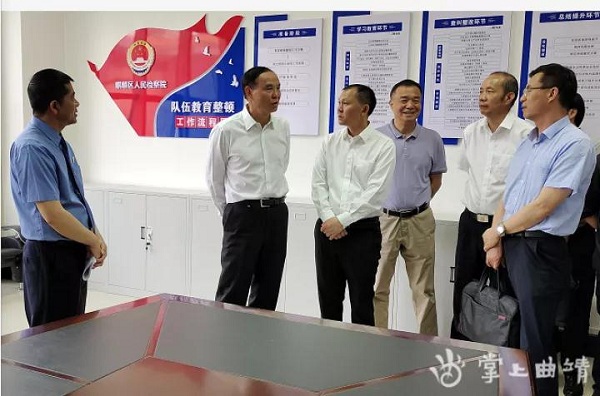 在麒麟区人民检察院,李文荣强调,检察机关要扛好政治责任,把牢政治方向,以更强的担当打造过硬的队伍,以刀刃向内的决心勇气,勇于刮骨疗毒,真刀真枪解决问题,真正达到教育大多数、惩处少数的目的,用查纠整改的实际效果检验教育整顿的成效。要坚持以人民为中心,在查纠整改环节中,紧紧围绕司法救助、法律服务等工作的痛点堵点问题,准确把握群众需求,提高服务能力,让人民群众切身感受到教育整顿带来的新变化、新气象。