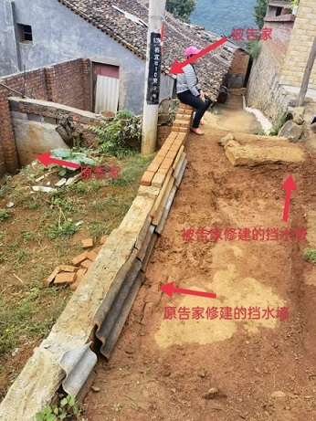 在历史排水沟阻塞后,后山上流下的水会漫入原告庭院内,原告遂在其住房后修砌一堵矮墙用于挡水,并将水导往被告房屋后阴沟小路流淌。被告以洪水漫入家中为由,随后也在原告彻挡水墙与被告房屋后阴沟小路相连接处砌起一个挡水墩,不让洪水从其房屋后面阴沟小路流淌。原、被告双方因排水问题发生纠纷后,经村委会及司法所多次调解未果,原告遂起诉至本院要求被告拆除挡水墩。